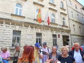 我們終於來到Kotor老城,它是黑山共和國,一個極為古老的城市,Kotor位於Kotor海灣內。Kotor西元前第三世紀,便有人居,歷經羅馬帝國,戴克理先皇帝。拜占庭東羅馬,查士丁尼建立城牆。又經威尼斯,匈牙利列強爭奪。總之它是一個非常古老的城市,是聯合國的文物保護城市。我們下了船,雄偉的城牆,威尼斯飛獅的圖案在望。進了大門,熱鬧的遊客,忙碌的餐廳,客滿的啤酒屋,清涼少女,活力背包客。古老的建築,難掩歷史的繁華。我們的在地導遊,不厭其煩地幫我們解釋,歷史上富有人家的豪宅。樓閣妍艷千百,極盡搔首弄姿。只是王謝堂前燕,幾度百姓家。只有市政廳與聖教堂的主人,沒有改變。我們跟著導遊,在巷道裡迴轉,像似穿越時光的隧道。