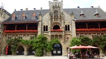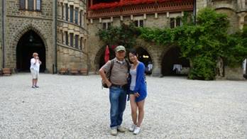 我們常聽說英國皇室,與漢諾威的王室,有密切關係。但我只是模糊的印象,透過這次郊遊,稍微清晰些。我們來到Schloss Marienburg,很漂亮的新哥德式建築,有點英國風味。我們在庭院照些像,然後坐下來喝點咖啡,或啤酒,涼快一下,剛才實在流了些汗。我們聊天,等著參觀皇宮。我們約一個小時的宮殿參觀,很有特色。可惜規定不能室內照相,真是可惜。好了!時間差不多了,我們要回漢堡了,天開始下起雨來,真是涼快。非常滿意這次第郊遊,我個人收穫良多,在複雜的歐洲貴族,封建制度,多了重要的一片新知與見證。還有我們愉快的郊遊交談,真是謝謝洪阿姨!我在網路上看到漢諾威國王Georg V,與音樂的關係,我就節錄一段,放在我們網頁的最後: