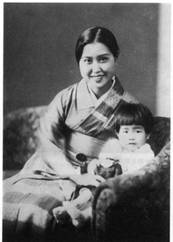 江文也的日本妻子信子與女兒 |