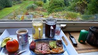 早餐:黑麵包、五神湯、石榴茶。 |