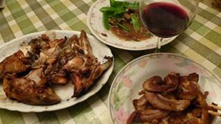 晚餐:烤鮭魚頭、煎鯡魚卵 |