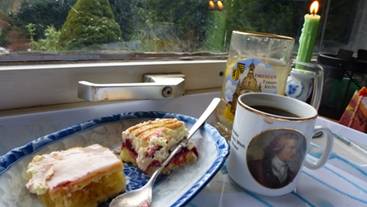 午茶:蘋果蛋糕、野莓蛋糕。 |