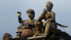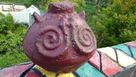 霧台社區,首先入眼的,便是漂亮的長老教會。特色的門面,用木頭雕刻著,魯凱族的生活,壯士拖拉木頭。我想著金字塔的拖石,也想起巴塞隆納,聖母教堂雕刻,基督拖十字架,奮力淡定的表情,栩栩如生。我們沿著河谷,走向魯凱族社區。景觀台上,美麗的陶甕,雕刻著兩條蛇頭。傳說蛇從天降,成為魯凱族的子孫。