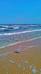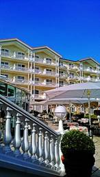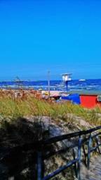 我們來到Heringsdorf小城的車站,女兒來接我們。Heringsdorf我從前就來過,記得當年是一片原始森林。現在木造的Heringsdorf車站,相似埔里集集車站Style,應該是東西德,統一後新建的,看得自然美麗。我們走過涼快的松樹林,Travel Charme賓館就到了,是五星級休假賓館。我們CHECK-IN,美麗的賓館穹頂,友善的服務員。陽光灑照陽台涼椅,窗外樹林,舒適安閒。放好行李,現在我們要去沙灘,經過賓館庭院,林木、陽光、樓台並濟。人們在躺椅上曬太陽,或浴池游泳。我們來到沙灘,美麗的白色沙灘,浪潮捲捲,好舒服的海風。女婿還有他的朋友們,都在這裡。他的朋友,我都認識,好久不見了。我們聊了一下子,晚上我們還要一起吃飯。接著女兒陪著我們,在沙灘上散步,我們走到Ahlbeck。Ahlbeck這裡有輪渡,十多年前,我便從這裡,輪渡到波蘭。Heringsdorf、Ahlbeck、Bansin是所謂的Usedom白色沙灘三姐妹。沙灘共長四公里,普魯士威廉大帝,特別喜歡這裡。1820年開始,便在這裡建了好多別墅,古典、浪漫與巴洛克建築。第二天我在這裡海水浴。
