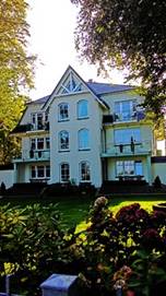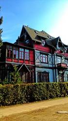2014-09-16.早上沙灘上戲水踢浪,午後沿著平行的大道,Promenade散步。妻跟女兒唧唧吱吱,說我們漢堡家的新鮮事,承睿來我們家,佳帝如何...母女話較多也溫馨。這裡Promenade高聳的松樹,林蔭大道,好舒服好涼快。路邊好多別墅,多彩多姿,爭妍鬥艷。普魯士1820年以來,留下來的建築。我們一路欣賞,四公里的海灘,不同造型的別墅,Villa Saphira、Villa Luise 、VillaAegir、Villa Medici...真是太美了。我也說不出它的美麗,我把照片撲在這裡,你自己欣賞吧!或者你上網查Heringsdorf Villa。這裡是渡假區,當然好多餐廳咖啡館,這些別墅,都是文采威廉大帝,1820年以來興建的,東德期間荒廢,統一後再重新整修。我看著別墅欄杆,渡假出租廣告,可能還未盡宣傳。除了類似Travel Charme的賓館,價錢並不會太貴。Heringsdorf的發展還在過渡,或許明年九月,我們來這裡租個套房,可以廚房做菜的。我們與女兒、女婿,還有他們的朋友們,一起來這裡波羅的海渡假。