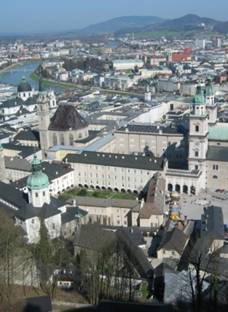 Joseph I.階梯取景。伊麗莎白漂亮活潑,但命運卻極為坎坷。我們走過沙士堡河流,雨越下越大,來到莫扎特故居,大門已經深鎖。他的出生房子,我從前就來過。莫扎特當然是天才,命運更是坎坷,死亡時極為孤寂。我一直在想:為何天才老是那麼寂寞。沙士堡碉堡應該去參觀,我從前來過,滿喜歡它的宮殿,但我們的導遊卻是如此敷衍。