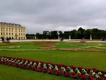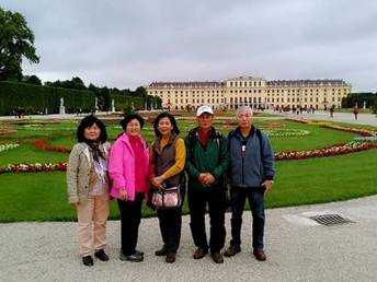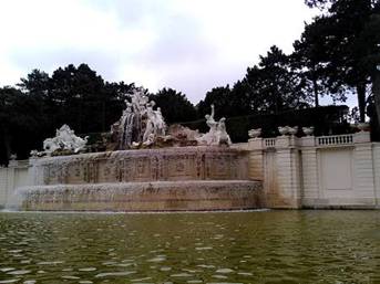 我們來到維也納美泉夏宮,已是中午時刻,準備買宮殿入場卷,但電腦控管已超過人數,不得而入,我們的團員又開始抱怨導遊了。我並沒什麼失望,美泉夏宮,我來過好幾次,宮殿房間:西西房間、德蕾絲雅房間、拿破崙房間、梅特涅房間...,等下我再解釋,我也會說說哈斯堡王朝的簡單歷史。因為進不了宮殿,我們只好在夏宮的庭院裡逛逛。它的庭院花圃,造型婉轉多姿,沒有凡爾賽宮,松柏的圓錐,顯得遼闊悠遠。多瑙河的河風微微,它的最遠處,有個相似雅典神廟,又相似凱旋門的觀景台Gloriette。觀景台的底下便是海神噴泉,希臘神話的雕刻,栩栩如生。我當然會馬上想到,我愛西西電影的情景。真實歷史:奧匈帝國王后伊麗莎白,便在這裡與Franz Joseph一世嬉戲,而電影也在這裡拍攝。我們的親戚拍完庭院,便跑到觀景台上,體會伊麗莎白王后的活潑、對巴伐利亞家鄉,大自然的愛好。