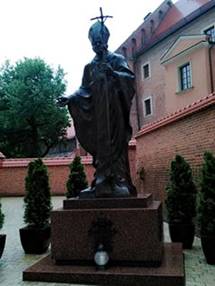 除了神話,Krakau還有Method von Saloniki傳奇的故事,Method兄弟是第九世紀的傳教士,他向斯拉夫民族,傳播基督信仰。他們被東方正教,羅馬公教,都被尊為聖人。Method也記述了,波蘭在Krakau,999年建國的歷史。教宗若望保祿二世,在1988年,把Method定為歐洲宗保,這在基督教歷史,當然是重要的事件。我們慢慢離開Krakau主教座堂,教宗聖若望保祿二世的雕像,就立在大門口,他曾是Krakau的大主教,我們跟他合照。他是天主教的聖人,他也影響了波蘭,離開共產蘇聯,使波蘭走向歐洲民主。