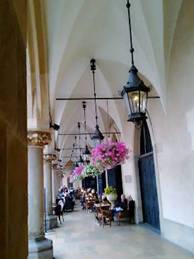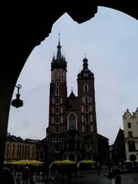 我們來到瑪麗廣場,導遊說這是歐洲最大的廣場,這裡有瑪麗教堂,建於1287年,中世紀建築物。一個漂亮的長廊,裡面很多精品店、咖啡館,還有餐廳,美倫美奐。中央一個Adam-Mickiewicz紀念碑,他是波蘭文學家,1798-1855,他致力於波蘭建國的理論。希臘文藝,繆斯女神雕像,圍繞其下。1940年德軍佔領波蘭,紀念碑被毀,現又重建。獨立是每個民族的願望,但卻是法西斯最痛恨的事,我們在紀念碑前,照了好多照片。雖然天氣不好,但我們還是玩的很高興,然後一起去午餐。