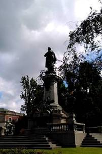 蕭邦大道的盡頭,便是哥白尼廣場。我們一談到文藝復興,便會想到達文西、米開蘭杰羅,或者1517的宗教改革。文藝復興是尋找,希臘的理性與美感,也包括畢達哥拉斯的數學,泰勒斯的物理學。那文藝復興,數學與物理學的代表,便是哥白尼(1573-1543)。哥白尼在古老的波蘭Krakau,上過大學,也在古老的意大利Bologna上大學。他的天文學成就是天體運行論,太陽中心說。然而他的理論,在當時並沒有受到重視,同樣的也因此,也沒有受到教會迫害。一直到100後,1616年才被列禁書,但那時哥白尼已過世(1543)。哥白尼在Frauenburg住了40年,當年東普魯士,今日波羅的海岸邊。就在肯尼士堡,康德故鄉的附近。哥白尼的主要工作,是行醫當醫生。天文學只是哥白尼的樂趣,哥白尼雖然有個天文觀查台,但很少利用。他收集無數,別人的觀察數據,加以整理而成天體運行理論。哥白尼默默的陶醉,在他的天文樂趣,低調行事。但無可懷疑的,哥白尼是個世紀的天才,但沒有人認識他。我們在哥白尼廣場逗留甚久,旅遊期間我拍照,很少上鏡頭。我請豐懋在哥白尼雕像前,幫我照個像。為對這位低調虛名,陶醉興趣的,天文奇才尊敬Hochachtung。