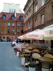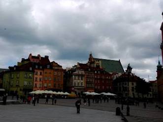 in Warschau,Sigismund圓柱在廣場中央高聳,意大利風格。周圍Praga美麗社區,把廣場衛城古色古香。我們在這裡拍照歇息,交通隧道在城堡底下通過,兩岸綠色花圃,延伸連接宮殿城牆,壯麗多彩。除了紅色宮殿,白色市政廳也在這裡。我們慢慢走向集市廣場方向,巷道裡琳瑯滿目的商店。