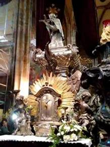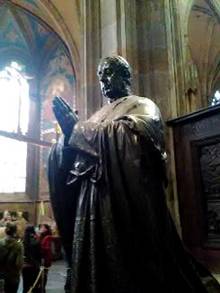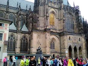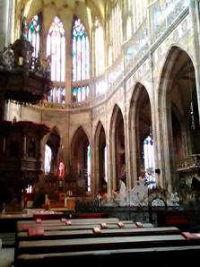 我們離開Wladislaw 宮殿,來到Vietsdom主教教堂,在大門的牆上,刻著 Vietsdom教堂,929到1929年的一千年歷史。我們走進教堂,從教堂頂端照下五光十色的彩光,它由 26740塊璨爛玻璃組成。教堂長 124公尺,寬60公尺,高34公尺。教堂裏面的兩邊,一個祭台接著一個的祭台。