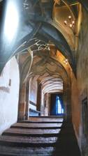 直接進入了前廳,然後進入大廳,是一個極為漂亮的後歌德式大廳,大廳長62公尺,寬16公尺,高13公尺。大廳上面是由一些極為精緻的拱條編織而成。聽說她是中歐最漂亮的後歌德式大廳。這個大廳1493-1502年為波蘭 Wladislaw 國王所建,所以這個房間也稱為 Wladislaw宮殿,當時他作為皇宮正殿之用,現在捷克人在這裏選他們共和國的總統。