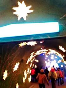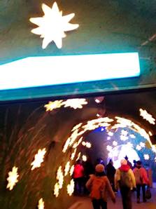 我們在處女峰頂峰,由時光隧道、冰雕隧道,現在來到Fantasie幻夢隧道。由冰冷黑白,回到溫暖彩色。多彩姿的世界,幻夢的世界。幻夢隧道,聲色具麗。隧道的天空,閃爍著星星。星球裡的幻夢世界,五光十色,跳躍的聲符。我陶醉在聲色,天方夜譚1001夜。我幻夢阿拉丁神燈,馳揚的飛毯,阿拉伯性感,頓挫的肚皮舞。 我好像周旋在伊斯坦堡天空,尼羅河神廟。大自然的演化真是美妙,我讚美大自然的目的性。生生之德,讚天地化育。