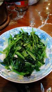 已是橘紅黃昏,月亮早掛松樹梢,沿著光復路,春天花草,半個小時林蔭散步。曲珍很會做菜,今日家常佳餚:甜醬魚卵、紅燒紅鱤、炒蚶仔、排骨燉湯...。我們的生活,這樣平凡簡單,人生自足,處處皆天堂。