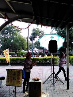 橋仔頭糖廠,是附近休憩的好去處,日本時代的規劃,現在樟樹高大,林蔭大道。我的姨丈,曾這裡上過班,留下破舊的日本房舍。防空洞還在,成了藝術廢墟。日本神社的塔柱還在,多了本土信仰的土地公廟。國民黨時代,神社改成中正堂,阿扁時代,中正堂改成福利社。我小學時候,學校坐輕便車來這裡遠足,糖廠發給我們健素,奇異的味道,還留在我記憶的味蕾。現在我們來購物中心,最吸引人的是,它的紅豆孝母冰淇淇淋。我們買了冰淇淋,坐在寬廣的涼亭下。我們聊天,大弟秀著他可愛的孫女,聰敏可愛。涼亭下還有位氣質淑人,演唱歌曲,台語、日文、中文。唱的不錯,她還出了CD。大弟與我都打賞。快四點了,我們準備看大選開票。大弟載我們回蚵仔寮,謝謝大弟的美好午餐,悠閒的糖廠散步。
