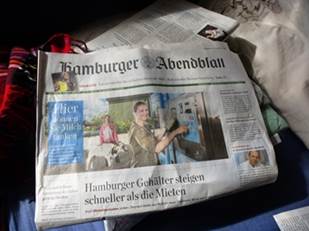 今天陽光,極為暖和。吃過早餐,讀漢堡晚報,我聽到空氣中,極為寧靜,好像什麼聲音,我問妻她說沒有。好像我七歲時,母親過世時,大自然空氣的凝靜。地籟天籟,希格斯場激發的音聲,雖然我是正常音波的聾子。我的耳朵自動過濾,喧囂的波長,順風耳來自太空的音訊。科技的演化,Sensation,20多年前,我學電腦打卡。同學說房子大多機器,將擺在桌子上,它成了今日PC,又演化成手機。我讀今日晚報,不止器官可移植,一個人頭移植到新的身體。不只有汽油加油站,德國也有,加鮮奶的牛奶站。公車無人駕駛,梅克爾渡假回來,開始上班了。台灣總統真辛苦,要去蘭嶼,要去苗栗,要去太平島,栖栖遑遑,如何坐籌帷幄。同樣民主形式,內涵差那多,帝王與啟蒙。什麼樣的人民,什麼樣的媒體,什麼樣的政府。