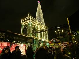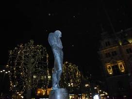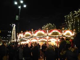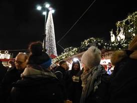晚上我們來市政廳,阿斯特湖畔,聖誕節市場。燈光閃爍不夜城,節日很嗨的氣氛。我們順著攤位輪轉,人山人海摸肩接踵。圍著站桌,喝著熱熱的玉桂甜紅酒Glühwein,這是德國聖誕市場的標誌。我們也買些schmalzkuchen豬油麻糬糕來吃,一樣德國聖誕市場的標誌。逛著肚子餓了,買串豬肉串,邊走邊吃,聖誕節市場,無拘自由與人性。阿斯特湖的冷風颼颼,但吹不散,我們聖誕節氣氛的溫暖。