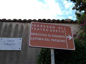 我們離開由岩石開鑿,15000座位的希腊劇場、狄奥尼索斯耳朵、採石場安息穴。路經Via Paradiso,要去羅馬劇場、Hieron二世祭台。