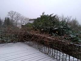 8點半了天亮了,我散步在庭院,芬多精的舒服。樹上葉子沒了,鮮艷的蘋果,還掛在那裏。閒庭信步,感謝老天,脚力穏健。今天超市買些食材,一棵聖誕樹,聖誕節孩子回家圍爐。