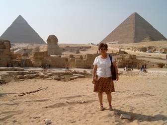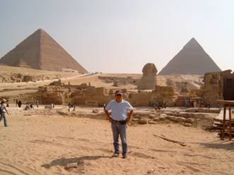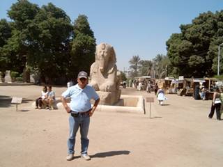 22.09-24.09.2006我們住在開羅的Zoser賓館,我們遊開羅、參觀開羅國家博物館、看金字塔、逰孟菲斯.但我要先說金字塔、孟菲斯,再說開羅國家博物館與開羅之遊. 9月23日我們在Gizhe金字塔旁邊的一家餐廳吃午餐,我們一行六人都叫了烤鱒魚,滿好吃的,但我們慕尼黑來的朋友,他們住慣阿爾比斯山,還是不習慣吃海鮮.吃過中餐休息一下,我們的巴士就往目的地行駛.哇!好大的金字塔!下了車,你越往金字塔走,就越覺得自己的渺小.這可不是我說的,拿破崙說:在金字塔前面,我感到自己的渺小.我們的數位相機根本照不下Gizhe的三個金字塔.最大的叫古夫(Chufu2551-2528BC)金字塔,第二大的叫卡夫拉(Chephren2520-2494BC) 金字塔,最小的叫米克尼諾(Mykerinos2494-2472BC) 金字塔.他們是祖父、兒子、孫子三代的金字塔.當我們幻象它的建築經過,我們只可能想到這裡有數不清的螞蟻在移動,螞蟻頂著石頭在移動.當我們走近金字塔,那裡是一塊石頭?那是個集裝箱貨櫃.那怎麼可能的建構!專家們還在作研究.但事實:金字塔就擺在你前面,所以說金字塔是神秘的.這是從建築的觀點來說,從宗教的觀點來說,它就更神秘了.依照古埃及的信仰,人是可以復活的,但必需用原來的肉體來復活,這跟婆羅門教,用靈魂來輪迴的觀念是不一樣.所以印度人把肉體燒了,埃及人必須把肉體變成木乃伊,然後放在最容易復活的地方,那裡最容易復活呢?埃及人認為高高的,尖尖的對準天空,最容易復活,那便是金字塔了.法老們建金字塔,就是為放木乃伊,然後準備復活.金字塔真有那拿麼大的神力功能嗎?由這演義的,金字塔就越來越神秘了.