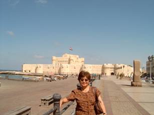 9月25日我們離開開羅,我們要去亞力山卓城.經與尼羅河平行的高速路,兩個多小時的車程,我們就慢慢進入了亞力卓大城.海水的味道,忽然又飛回記憶,美哉!地中海岸的珍珠!亞力山卓是世界上,第一個全球化的多元城市.亞力山大大帝十年的南征北戰,三十歲便建立了跨越歐亞非的大帝國,加上亞里斯多德學生的素養,亞力山大大帝最具國際觀,331BC他在Rhakotis這裡建立了希臘文明的現代城市.