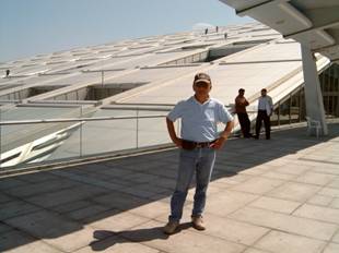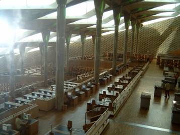 亞力山大圖書館在宗教的爭奪中,被破壞被燒毀,是人類文明的一大遺憾.人類茲茲不忘這學術的歷史象徵.所以有心之士,便籌募巨款,再造文明,它的願望在二十世紀末被完成,圖書館座立在地中海海灣的行人區.我們來到了最新的亞力山大圖書館,走進圖書館要接受嚴格的安全檢查,它的屋頂建構全用玻璃構成,在地中海濱,好大的氣派,亞力山大圖書館恢復了兩千年前的舉世地位,智慧燒不盡,春風吹又生.圖書館的電力來自大自然的太陽能發電,電腦設備齊全,只要要個密碼,便可上網,我就順便上網看個Mail,從非州看歐洲與亞洲.