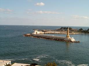 我們的車子在法羅斯島對面,在克里歐佩特拉宮殿的海岸停了下來,茫茫的法羅斯燈塔早就沉入海底,我們只能幻象這世界七大奇蹟的倩影,四方形的底座,八角形的樓台,圓形的燈塔,它閃爍的燈光,正如埃及艷后的欲語還羞,拖引著凱撒與安東尼的愛情之舟.在原來克麗姬宮殿的前面,現在建立了一座白色的宮殿,我們遙想當年克里歐佩特拉(51-30BC)與安東尼,在這海岸的甜蜜歲月,安東尼樂不思蜀.我們也嘆惜克麗姬被Augustus強行擄回羅馬,她用毒蛇毒死自己又悲壯又憐惜的形影.我們在海邊的餐廳休息,甜美的鳟魚午餐.北非地中海的陽光特別熱情,克里歐佩特拉的影子在我腦子不能揮去.