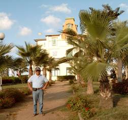 我們來到夢塔薩Montasah的皇宮,車子駛進林蔭大道,是一片公園.再進入一座牌樓,便是夢塔薩海倫Helena賓館了,很快Chek in,我們到了房間,真是高級賓館,我們的陽台對著地中海,Montasah宮殿就在斜前方.那是過去埃及國王所住的地方,被放逐後,成了Helena賓館的鄰居.我們在陽台上喝杯咖啡,休息片刻,看幾頁小說.天候還早,我們到海邊的公園走走,林木花草修整得綠意盎然.我們往海邊的方向走,一間間的渡假別墅,我們沒有目標的閑逛,走到涼亭,走在沙灘,我坐在欄杆上,它的後頭便是地中海上的一座紅橋.這裡只有浮雲與海水,陽光與閑情逸致.我想著埃及文學家Machfus的話:像清晨的露珠,像翻湧的白雲,像雨後的陽光傾灑大地,像充滿甜蜜和淚水的記憶.