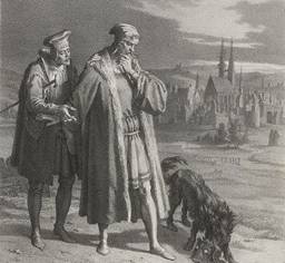 b.精疲力倦的浮士德又回到了現象人間。然後在一個機會出現在宮庭里。周旋於皇室之中。