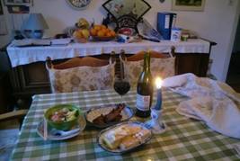 煮把意大利寬麵,放幾個明蝦,放幾顆肉丸,切兩根青蔥。都渾然一體時,撲些乾炒洋蔥,澆點蘋果醋。這便是我簡易的意大利湯麵,吃過的人,都說好吃,我自覺おいしい。我的午餐,其實也是晚餐,我習慣會喝杯法國波多爾紅酒。方便時,吃點蛋糕,我的最愛:香草蜂蜜蛋糕。喝點加糖紅茶,算是英國人的午茶吧!休息一下,沒有特別目的與企圖,或者睡個午覺,留得春光過四時。