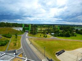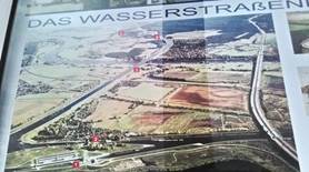 我們來到馬德堡,易北河與運河橋的水域。我們看到柏林來的老朋友,好高興!怎麼你也來了,我們的高興,一切不言中。我想著年青時代,往事只能回味。我們因緣的相聚,時間真的好快。集合後我們一起去,水路瞭望台,看看易北河水域的大概。一片美麗,卻沒什麼概念。看了解說圖,還是一片迷茫,可能真的馬德堡水域,易北河與運河連接,太復雜了。站在綠色的瞭望台上,我只是幻想,歷史法蘭克人與薩克森人,這裡逐水草。這裡一片大平原,也是一片戰場。我好像聽到千軍萬馬,互相屠殺。我好像看到,血流成河,染紅的易北河。經過千年,現在易北水域,安靜了下來,人們安閒著生活,人在大自然中演化。鳥瞰水域大概,甚是幻相,現在我們回歸車子,我們要去對面的運河橋。