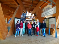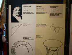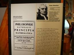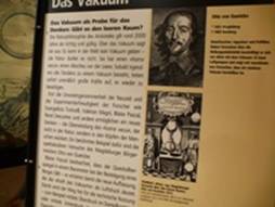 在笛卡爾的旁邊,介紹了伊薩克.牛頓(1643-1727),他寫了自然哲學與數學原理,他的物理學三大定律,不可撼動的古典物理學。他看到掉下的蘋果,思索地心的引力。這為什麼的思索,是啟蒙精神的典型。這裡也談到牛頓微積分與萊布尼茲的爭執,還有光是波還是粒子的理論。今日物理學已證明,波粒二象性,當然光子與光波導矛盾就解缺了。而且我想它也解決了,哲學唯心與唯物的矛盾。牛頓介紹遠一點的地方,放著德國數學家高斯(1777-1855)的圖片,還有他的數學理論。過去的十塊馬克錢幣,印著他的鐘形平均中值。他是自然神論者,像愛恩斯坦一樣,這就是康德說的大自然目的性吧!在第三層展覽,放著很多Otto von Guericke(1602-1682)的真空實驗,Guericke在馬德堡出生,在漢堡過世。他曾經是馬德堡市長,馬德堡又稱奧圖城市,一半是他的名字而來。我看不少小孩,在這裡玩著Guericke有趣的真空遊戲。我們大夥一起,就請展覽館的看館小姐,幫我們合照一張團體照。咔嚓!時間差不多了,我們慢慢離開千禧館。在庭院裡回看,迴旋的蝸牛建築,隆闊兄還在頂端,搖搖手!振衣千仞崗!