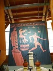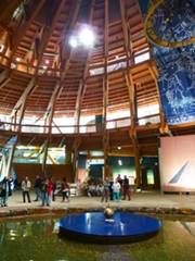 P Staub的造型。千禧塔蝸牛般的迴旋,象徵人類的演化,悠然曲線的上升。我們進了千禧塔,世紀的震撼,Foucault(1819-1868)的擺動圓球,由木造的屋頂,垂空而下。在金銅板上,擺動著花瓣的軌跡。在伽利略200年後,Foucault在巴黎萬神廟,驗證地球的轉動。400年後,在千禧塔,再次驗秀人類的文明,科學不敗的榮耀。我坐在長凳上,仰首天空,俯視大地,看圓球渾然擺動,壯麗的美感,讚嘆不已。