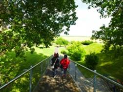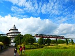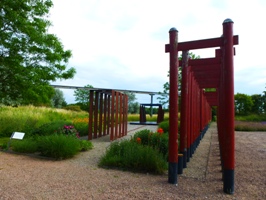 我們離開千禧塔,慢慢走回園區小徑,經過廢墟造型景觀,兩邊路上,長滿了各種花草。森吉嫂說那是Heilkraut,我們說的雜草,卻是有用的藥草,自然的美麗。千禧塔前的磁浮模型,剛好馳過,文明與科技。我經過一個紅色的花園,相似日本神社的鳥居。一排排連接,相似稻荷神社,名為秩序花園。易北河的陽光,慵懶照耀著Elbauenpark。Elbauenpark不只千禧塔,文明的理念與結構。也是花花世界,西方淨土。我們走在回車路上,年青德國世代,無憂慮的草坪遊戲,嘻笑而歡樂。戰後的上一代,理性的軌跡,精緻的工作,贊天地化育,造就美麗國土。2014-06-29
