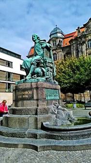 我們十點來到馬德堡主教座堂,除了參觀德國最古老的哥德教堂,主要是看德意志神聖羅馬帝國皇帝,奧圖大帝的墳墓。工作人員非常客氣的說,現在是作禮拜時間,她慫恿我們參加禮拜,或者十一點半再回來。我不想參加唱詩,就決定一個半小時後再回來,跟她說謝謝,等下見。走出主教座堂,天卻下著大雨,非作禮拜不行嗎?上帝沒那麼小氣,一下子雨就停了。我們做什麼呢?我們邊走閒逛,也不知作什麼。我就想起,十七世紀奧圖城市的市長與科學家Otto von Güricke,在網路上看過他的紀念銅像。就跟我們導遊隆闊兄說, Güricke的銅像,他說那就在老城不遠。我們估計一個半小時可來回,當然我就很高興了。就自然跟著走去,謝謝隆闊兄帶路。