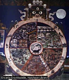 集諦.為什麼會痛苦呢?因為我們無知(即無明),因為我們誤會有一個永遠存在的自我,自我的靈魂。誤會這個靈魂在生老病死的痛苦中輪迴。釋迦牟尼告訢我們,其實我們並沒有永遠的自我,自我只是地、水、火、風暫時的聚集。而靈魂只是色、受、想、行、識五蘊的幻相。地、水、火、風暫時之聚集也好,色、受、想、行、識五蘊聚集的幻相也好,都是因緣所集的幻相。它並不是實在的東西,它並不是實相。