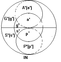 animalischen Natur。動物界的構成有兩個成份:一為肉體,一為靈魂。我們以肉體定義pvP(p)以靈魂定義a'vA'(a')。於是動物界的構成即陰陽學的[a'vA'(a')]^[pvP(p)]→T1