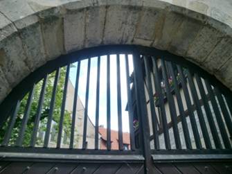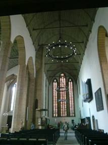 從山上下來,我一直跟著宇平會長,我跟他說,我好大的希望,想看看奧古斯丁修道院,我害怕我們的時間不夠,需要中午趕回青年館午餐。宇平用網路導覽,過了Gera河,好青翠的林木與粼粼流水,沿著奧古斯丁路,我們很快就來到奧古斯丁修道院,哇!我真的好高興,宇平真是第一名!古堡式鐘樓,鵝卵花石,鑲著潔白的教堂石壁。我們走進奧古斯丁教堂,幾環掛燈,照亮著神的宮殿,卻是簡樸而大方,或許你在這裡可得到聖靈的啟示。可以想像,這是宗教革命後的新建築Style。我離開教堂,走向牧師居住的後院,從這裡猶可窺視當年奧古斯丁修道院,古老而陳舊的房舍。馬丁路德在這裡思索著天主教的為善救贖,自我啟蒙而頓悟:信而成義。信而成義是馬丁路德的根本神學理論,它激發著路德一生的生命力,也推動著他的宗教革命,轉動著世界潮流。而這裡奧古斯丁修道院,正是馬丁路德啟蒙的土地。這裡奧古斯丁修道院,是歐洲宗教革命的搖籃,歐洲宗教第一次啟蒙,從這裡開始。2012-06-02