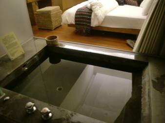 2012-02-02我們住在鹿鳴溫泉酒店,六星級酒店,慧初很會訂房間,原是九千元的房間,我們只付了一半的價錢。酒店環境寬闊,草木翠綠,百花艷麗,池塘游魚,芒草涼亭,步道碎石,很是仙境。到了大門,原住民服務員,親切周到。進入大廳,寬廣涼快。我們check in,房間寬大,乾淨摩登。室內溫泉池,就在睡床與陽台之間。打開行李,換了衣服,就先洗澡、泡湯吧!冷熱適中,溫暖適舒。溫泉水滑洗凝脂,洗淨身心勞累,多躺一下,作個短殘夢。穿上酒店的浴袍,在陽台上,晚風蘇蘇,看東台灣的星空,山裡寧靜,幾顆星星。慧初住在隔壁,說要來喝酒。她拿來了Cognac,喝一小杯,無限幻夢。慧初健談又風趣,我們一直聽她聊,她精神可真好,開了一整天的車還不累。她不止說旅遊、南部生活、北部思維、學校教育、台南政治形態……。她怎麼知道那麼寬廣?我在想有的大學老師,懂得狹隘,但善於人事,而高居其位。我更欣賞慧初,而鄙不學有術。專攻權術的老師叫人厭惡,如騙術政客,睜獰可惡。夜深了,我真有點累了,再喝點酒,慧初便回房了。第二天醒來,天氣真好,我再泡個湯,精神抖數,我們北上花蓮。2012-02-11