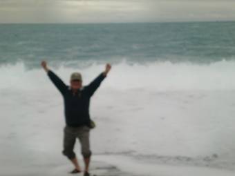 慧初是我們的司機,也是我們的導遊,她對東台灣有夠熟悉。到了中午我們來到富岡漁港,她帶我們到一家飯店午餐,是道地的本地菜餚。從這裡有郵輪到綠島與南嶼,我們休息片刻,又繼續上路。沿途海岸很是翠綠,海灣婉轉溫柔,很是健康少女的天真美麗,應說阿美族美麗姑娘的活力。我們過了小野柳,來到華源海岸,太平洋的海風吹拂,甚是暖和。我看慧初坐在一塊石頭上,面對大海而沉思。後來我才知道,華源海面,是阿民母親海葬的地方。我想著我們的好友阿民母親,眷顧海洋台灣,回歸美麗翠綠的大自然,在華嚴世界永恆,我們的祈禱,我們永遠的懷念。2012-02-01