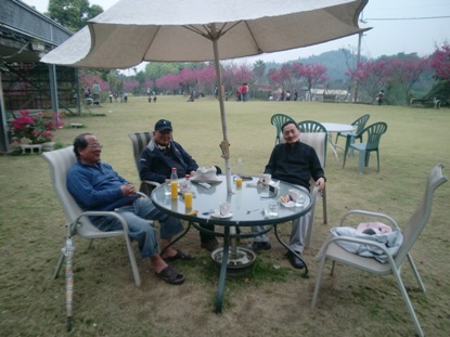 我們經過古坑老城,去了劍湖山,湖光山色,櫻花岸邊,水色怡人。走向山坡,簇簇山樱,紅艷浪漫,醉人如痴。我們在露台咖啡座,坐了下來,點杯古坑咖啡。說些大學往事,現實政治,弘五提出淺盤觀念:其實就是人際社團的利益,說公益也可,人際現實膚淺,故說淺盤。我們鮮談實踐理性的價值觀,深沉的問題。愛說慈悲,迴避公義。政治只說勝選算計,少有價值取向。為何如此?我們的文化,是未經啟蒙的文明,政治現實則被中國與美國牽制。現實的演化是如此遲緩,但啟蒙卻是唯一的出路,包括你我的自我耐性的啟蒙,要抓住根本問題,不能表面算計。我們老朽已矣,在茲念茲,如是而已。慢慢走下山坡,去了慈園,是開放的私人莊園,展有古老農村文物,還有美麗庭園,適舒幽雅。慈園是說些了歷史,說五代同堂,如此古雅,也就如此而已。2012-02-23