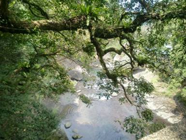 我們來到角板山隔壁,桃園秀麗山莊小烏來,山路引向平台,也導向溪谷。踏遍小徑階梯,也走過吊橋。站在吊橋上,小瀑布的溪水,流竄卵石間隙,水聲涼爽。有塊景點風動石,好大的磐石,大石那有動,風只是微微的吹,是心在動,佛說萬物唯心,不是幡動。是中午時刻,都是原住民開的店,我們走進一家居高臨下的餐廳,視野甚好,可賞山色。點了泰雅族的胡椒烤鯛魚,炒米粉與野菜。鯛魚是現撈的,新鮮又炭烤,不知是不是泰雅族的作法,味道不錯,我們沒有時間觀念,慢慢享受,難得的陽光。飯後我們走向小攤,要了原住民作的薑母茶,與原住民閒聊。泰雅勇士原是國安局特勤,聽他講過去的豐功偉業故事,甚是有趣。原住民純樸單純,少有漢人的矜持與心機。泰雅少女,知無不言,滔滔而言,言無不盡,甚好好相處,我愛原住民。2012-3-17