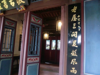 中午在富雄家吃飯,他好會作家常菜,咖哩馬鈴薯、山藥排骨、薑絲魷魚、乾炒魚干、炒米粉……。下午去林家花園。我們散步林家庭院,在花園茶館喝茶吃蛋糕。是因忠全的介紹,我們聊了好多哲學,人如何認識,認識的層次,經驗、邏輯、理念,天上人間,1與0,都是哲學的基本觀念,沒什麼特別的。我倒是在古厝裡,欣賞了好多詩詞,很是意境。草屋三間足避風雨,黃花半畝與我周旋,很寫照我簡單的生活。下午四點,跟他們說再見,我便坐高鐵來嘉義,明天去阿里山。2012-03-19