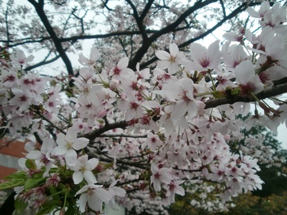 一大早跟弘五坐巴士,我們要去阿里山看櫻花與神木,約兩個鐘頭的逶迤,我們來到了山上,好多巴士,大多大陸客,好恐怖!弘五對阿里山很熟悉,我們先坐阿里山火車,我們要去看櫻花。阿里山火車,是世界僅存的幾條山上鐵道,很是古典,車站木質建築也甚是特色。我女兒、兒子、女婿,幾年前,都來過這裡,留下深刻的印象,我還是第一次來。我們走過彎曲的步道,弘五說上次來,沒那麼多遊客,很是幽靜,我可以想像,這裡少遊客的仙境。為了旅遊業,無限擴張,並不中庸,極端的政策,居民必墊代價,大自然的糟蹋,不只自我摧殘,也引兵入寇。台灣是袖珍的少婦,經不起許多強暴,不只阿里山,還有日月潭、西子灣…….。我們來到櫻花區,吉野櫻花,這是日本人留下的美麗。櫻花戀,sayonara,日本式的Good by。她真的美麗,但我無法描述,可能我缺乏日本人的感覺吧!我看著許多年輕人,還帶著小孩,愛忍不釋,真的具賞櫻情懷,一看就知道是本土的,他們沒有遊客的匆忙。