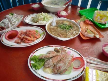 掃完墓我們回高雄,我與侄兒們在旗津吃午餐,就在有名的萬三魚餐廳,好新鮮的魚貨,琳瑯滿目,價格也適中,坐無虛席,有好多在地人在這裡吃海鮮。就在盛餚美食,歡樂談趣中,我被魚刺,心裡感覺如鯁在喉,看了附近市立醫院,並無大礙。我們又去左營逛蓮池潭、孔子廟。在水邊步道上,碑牆上有本土詩人的創作,我讀了些,只覺乏善可陳,泛泛之作,不與虛名爭。我們也吃有名的左營餛飩,也為女兒買些她喜歡的牛肉乾,貨真價實。去侄兒家坐坐聊天,再去診所看看,確定無礙。謝謝侄兒媳婦們,無微不至的關心與照顧。我們便回蚵子寮,今晚過夜老家,明天我們遊大崗山與阿公店,再去新市侄女那裡卡拉OK。回到故鄉蚵仔寮,我總覺得如魚得水,如沐春風。我侄兒把我母親陳舊的畫像,拿去再重修,看起來清晰多了,真是太謝謝侄兒了。我也把父親、哥哥、祖父的畫像,重新多媒體照過。往事不可追,只留回憶中,也留給我的小孩。2012-3-25