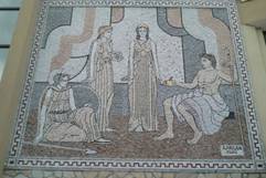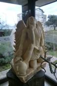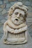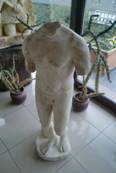 中午我們在Iris餐廳午餐,這是一次不是自助餐的午餐,有服務的午餐。我叫了土耳其黑啤酒,還有魚片,當然前湯與沙拉,最後還喝了Raki。這餐廳真是藝術氣氛,到處放著藝術雕刻。在餐廳外邊牆壁,一幅巴里士選擇的莫薩伊克,一看便知道那個是赫拉、那個是雅典娜,那個是阿芙羅狄特,巴里士 手裡還拿著金蘋果。牆壁底下有一座雕像,人頭被蛇捆住。我的德國朋友說,那是托洛伊的英雄被蛇捆住,那蛇是希臘神祗,幫助斯巴達打仗而放的。好像來旅遊的德國朋友,人人都做了功課,至少讀了希臘神話,基本的文化是有的。庭院裡有個小動物園,梅花鹿好可愛,我們導遊說,餐廳老闆喜愛收集動物。吃過飯,我們到沙灘散散步,海潮一樣傾訴,海風一樣吹拂。人類的文化,一般說來,都在河流岸邊產生發源。這小亞細亞,緊靠著愛琴海,所以就產生古文化的珍珠鏈:米勒、以弗斯、伊斯米爾、裴加蒙、特洛伊...。接著我們要去看橄欖油的製作工廠。