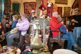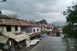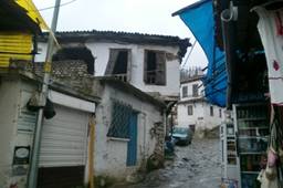 我們來到sirince,天上下著大雨,我們躲進博物館,也是sirince鄉公所。這裡面有家酒莊,老闆趁著大雨,請我們品酒,連續五六種酒。酒莊佈置也很別緻,當然他希望我們等會購買。雨慢慢停了,離開酒莊,我們沿著斜坡,大理石街道,古色古香,綿延而幽靜。兩邊盡是特產的商店,甜酒、石榴皮、果醬...,咖啡店與小吃店。我們散步到街道的較高處,看著sirince紅色的屋頂,鱗次櫛比,遠方雨後山霧,迷茫而神秘。我想起這裡曾經住過的原著民,應該是希臘人,也可能是帖木兒的後裔,血統幾經變異與重組,現在住有塞爾柱後裔。先來到的希臘人,就法理上這裡的主人?sirince自古以來,就是希臘的領土?