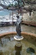 我們再往高處山丘走去,青色大理石,鋪成著歷史的滄桑,那裡有個東方正教的古教堂,它叫施洗者約翰教堂。我們走進教堂,古老而頹廢。希臘人離開後,留下神的宮殿,應該有半個世紀,沒人理會了。我們想找個蠟燭,也不可能。走出教堂,有個水池,聖母孤獨站在那裡。聽說你有什麼願望,你可丟個銅板,如果進入中洞,你的願望便可完成。我是丟了一個銅板,也進了中洞,但我才發現我並沒有許願。