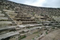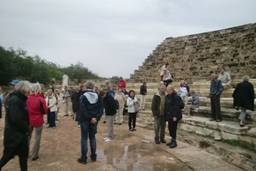 這個劇場是羅馬劇場,希臘劇場的舞台較深,羅馬劇場舞台較高。這裡可以容納15000人的觀眾,梅琳說原有的劇場圍牆已倒了,現在看到的只是原來的一部分。梅琳又解釋了劇場的重要設備,衛生設備等等。羅馬劇場,我們看過不少,問題是羅馬人跑那麼遠,把石頭大理石運到薩拉米。要統治一個地方,羅馬人真的很費盡心力。
